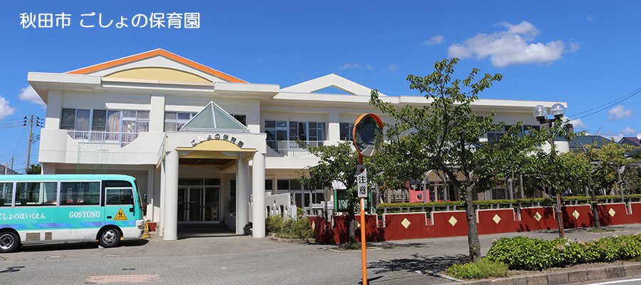 秋田県秋田市にあるごしょの保育園は、夢、希望、未来をベースに斬新なデザインときめ細やかな設備などに配慮した設計は、御所野ニュータウンを中心とした、地域の皆様の期待に叶うものと確信しております。幼児教育33年の経験を踏まえ、保護者の皆様や地域の皆様から愛され、安心と信頼が得られるように、保育、教育を目指していきます。